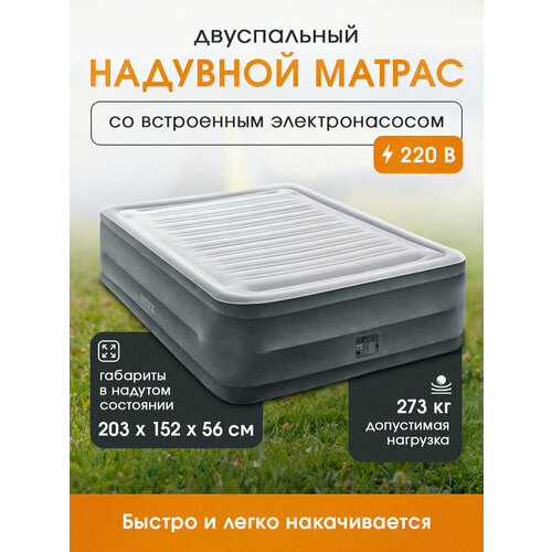 Надувной матрас Intex со встроенным электронасосом 152x203x56 см, двухместный, флокированный, серый: сравнение цен, характеристики, фото, актуальное наличие и цены.
