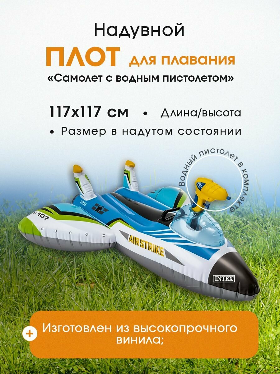 Купить Надувной плот Intex «Самолет», ПВХ, 117×117см, водяной пистолет, до 40кг с доставкой по всей России. Надувной плот Intex «Самолет», ПВХ, 117×117см, водяной пистолет, до 40кг: сравнение цен, характеристики, фото, актуальное наличие и цены.