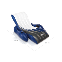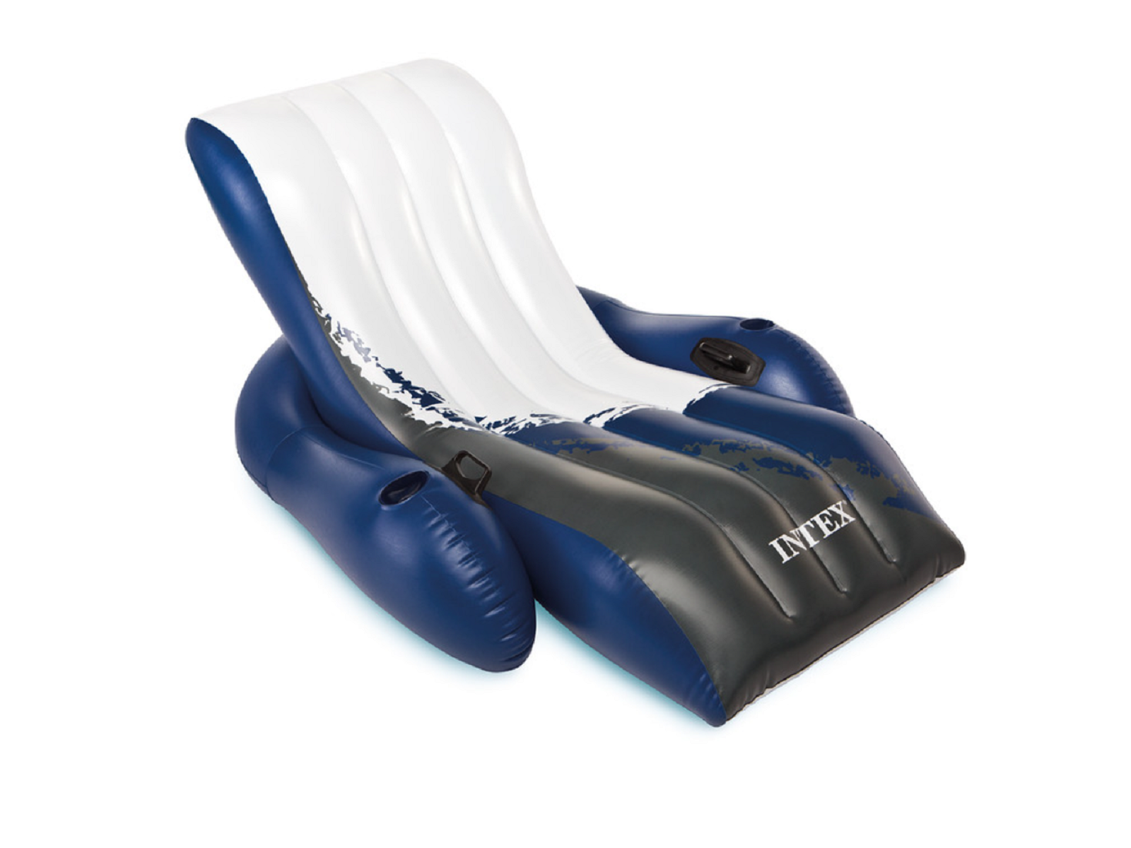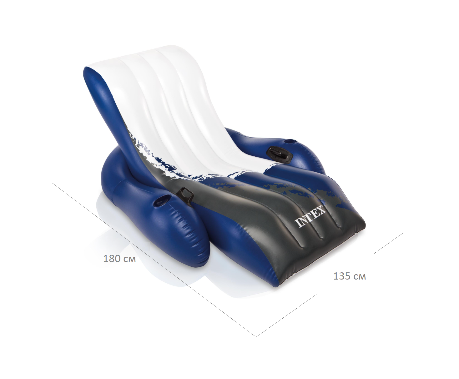 Floating Recliner Inflatable Lake Lounge 58868 Приготовьтесь к максимальному расслаблению с плавающим шезлонгом Intex. Пляжный шезлонг с красивой формой спинки и подлокотниками для дополнительного комфорта оснащен двумя воздушными камерами, двумя прочными ручками и двумя встроенными подстаканниками, чтобы вы могли держать напитки под рукой, пока плаваете и отдыхаете. Надувное кресло подойдет для использования: на пляже, в бассейне, может использоваться как коврик для загара на лужайке, на море. Возьмите с собой в отпуск, в сдутом состоянии не займет много места. Кресло для плавания является очень комфортным, а главное – легким, ведь его вес составляет всего 3 кг. Включает: спинку и подлокотники для удобства. 2 воздушные камеры. 2 встроенных подстаканника. 2 прочные ручки. Контурная конструкция для дополнительного комфорта Шезлонг Intex River Run - 1 шт. Размер: 180 х 135 см Возраст: 8 + Максимальный вес: 100 кг Материал: ПВХ 0, 45 мм Вес: 3, 65 кг Габариты упаковки: 36 х 31 х 14 см Ремкомплект. Упаковка.