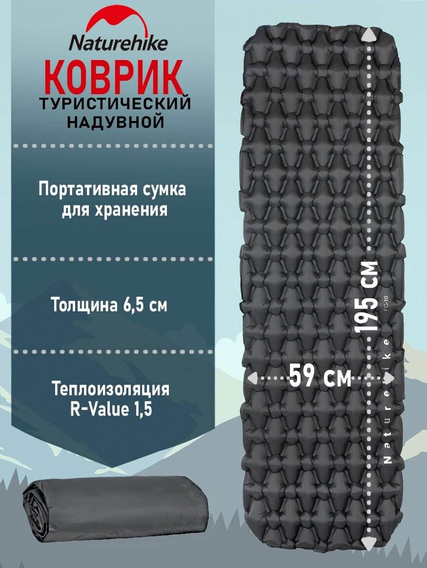 Коврик надувной туристический Naturehike FC10, серый, NH19Z001-P, 735336: сравнение цен, характеристики, фото, актуальное наличие и цены.