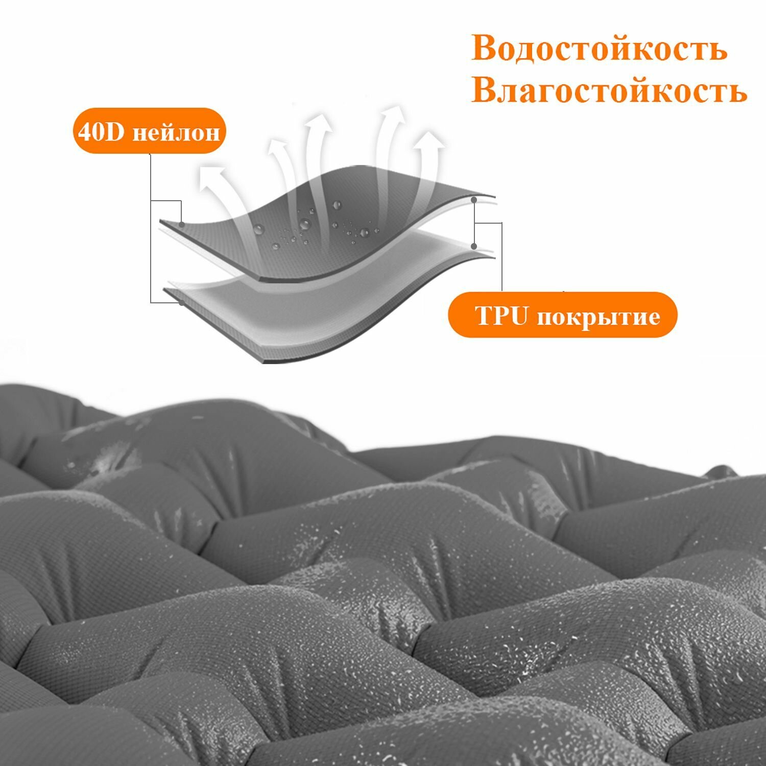 Надувной туристический коврик, легкий как пушинка и комфортный, как пуховая перина. Размер в сложенном виде сравним с бутылкой воды, коврик не займет много места в Вашем рюкзаке.