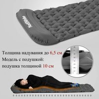 Главная особенность этого надувного коврика - интегрированная подушка, позволяющая спать с недостижимым ранее комфортом. Благодаря большому клапану легко надувается за полторы минуты собственными легкими.
