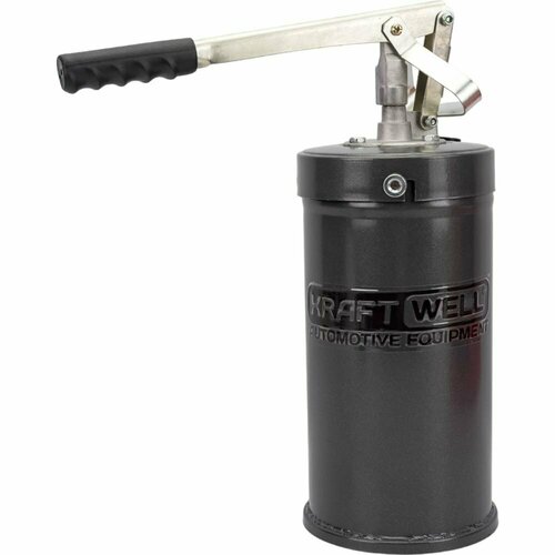 Нагнетатель масла с ручным приводом KraftWell 5 л KRW1795 представляет из себя стальную емкость объемом 5 литров с рычагом, воздействуя на который создается давление, необходимое для нагнетания масла.