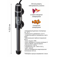 | Особенности | на присосках, подходит для морской воды, регулировка температуры, светодиодный индикатор |