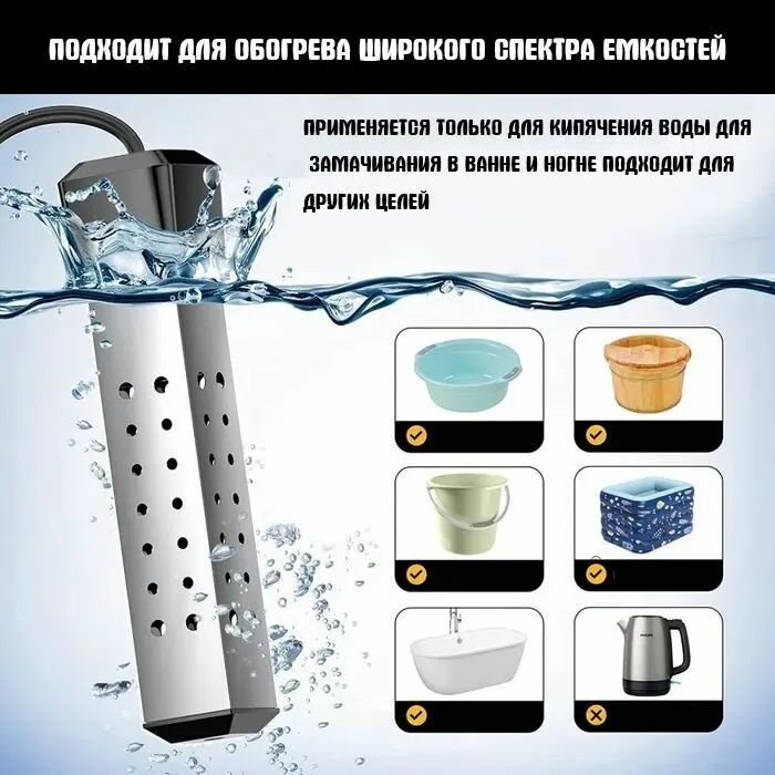 Мощный нагрев 2000 ВАТ: Мощный нагреватель для бассейна, предназначенный для эффективного и быстрого нагрева надувных и надземных бассейнов, позволяя вам насладиться теплой водой за считанные минуты. Нагреватель для бассейна быстро нагревает воду до желаемой температуры. точный контроль температуры: Нагреватель бочки, оснащенный ЖК-термометром, может контролировать точную температуру воды. Вы можете свободно устанавливать время приема и температуру воды. Портативный водонагреватель автоматически отключится при достижении определенной температуры. Универсальный погружной нагреватель: портативная и погружная конструкция погружного водонагревателя позволяет легко и удобно использовать его в различных емкостях. Погружной нагреватель идеально подходит для нагрева воды в ваннах, пластиковых и деревянных ведрах, тазах, надувных бассейнах. прочный И безопасный: сертифицированный UL надувной нагреватель для бассейна оснащен российской вилкой и защитным кожухом из нержавеющей стали 304, обеспечивающим долговечность и предотвращающим ржавчину или коррозию. Нагреватель для бассейна безопасен, надежен и может использоваться повторно. Быстрый нагрев большой емкости: электрический водонагреватель обладает высокой мощностью и эффективной нагревательной способностью, нагревая до 5–20 галлонов воды за считанные минуты. Обратите внимание, что во время использования походный обогреватель должен быть полностью погружен в воду.