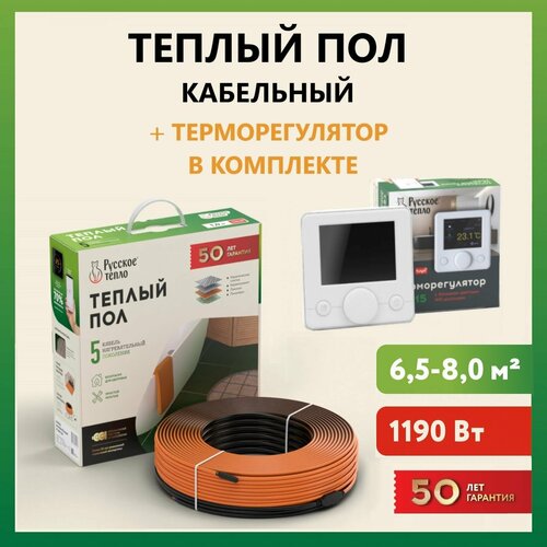 Нагревательный кабель для теплого пола двужильный экранированный Русское тепло 57м , в комплекте с терморегулятором РТ-15 (3.5 кВт.).: сравнение цен, характеристики, фото, актуальное наличие и цены.