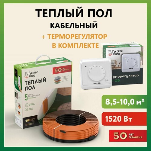 Нагревательный кабель для теплого пола двужильный экранированный Русское тепло 75м , в комплекте с терморегулятором РТ-05 (3.5 кВт.).: сравнение цен, характеристики, фото, актуальное наличие и цены.