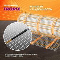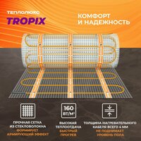 Предлагаемый теплый пол быстро и легко укладывается. Причина – в том, что производитель уже закрепил кабель на сетке и оснастил его установочным проводом, избавив потребителя от необходимости выполнять эту работу. Имеет значение и то, что не нужно создавать стяжку. При использовании Теплолюкс Tropix быстро и равномерно греет воздух в комнате, не уменьшая содержание влаги в нем. Заслуживают внимания надежность и безопасность предлагаемого теплого пола. Изготовитель дает на нее гарантию сроком 50 лет!