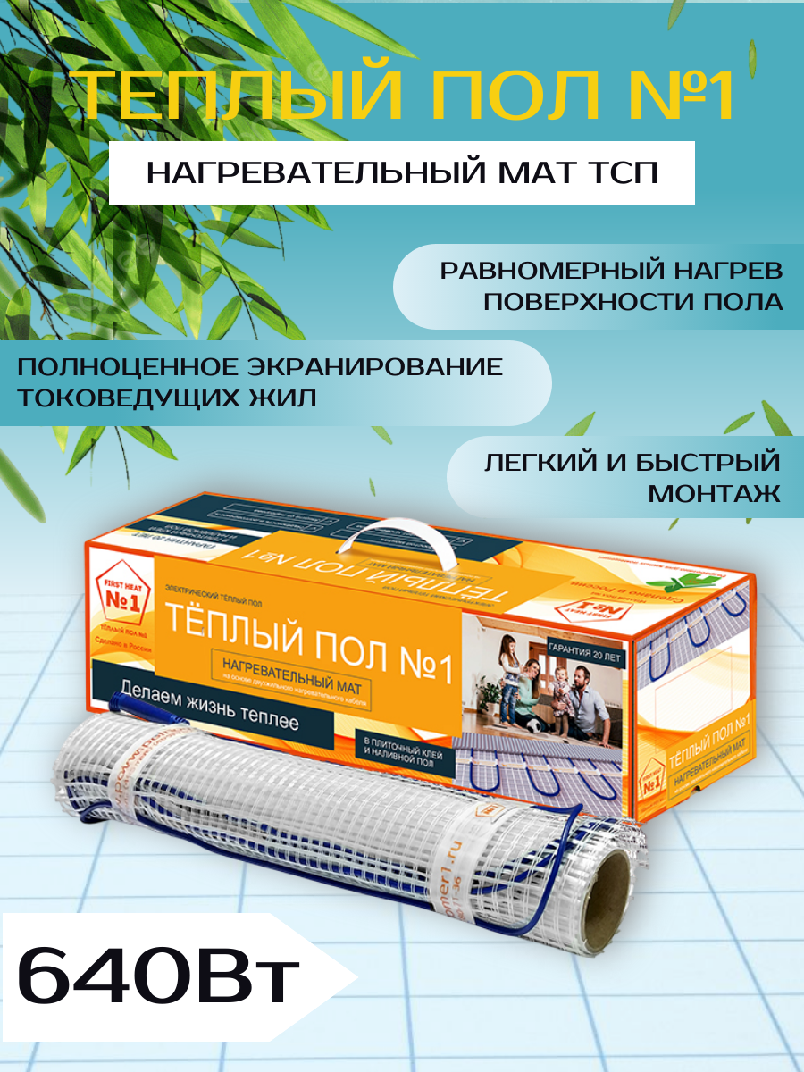 Теплый пол электрический под плитку ТСП-640 Вт/4,0 кв. м: сравнение цен, характеристики, фото, актуальное наличие и цены.