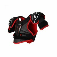 Нагрудник хоккейный CCM JetSpeed 350 JR - юношеская модель любительского уровня. Модель имеет удобную посадку. Передняя панель имеет односоставную, сегментированную конструкцию, где центральный щиток, закрывающий грудину, выполнен из формованной, вентилируемой пены PE и усилен пластиковой вкладкой. Такая конструкция обеспечивает отличную защиту, диапазон движения и воздухопроницаемость. Задняя панель имеет односоставную, сегментированную конструкцию, где центральный щиток, закрывающий позвоночник, выполнен из формованной, вентилируемой пены PE и усилен пластиковой вкладкой. Плечевые чаши анатомической формы выполнены из формованного пластика, который выстлан толстым слоем амортизирующей пены. Защита ключиц выполнена из двухслойной пены средней плотности, действие которой усиливается формованной, пластиковой вкладкой. Защита бицепса имеет цельную конструкцию, анатомическую форму и выполнена из формованной пены, которая усилена пластиковой вкладкой. Материалом внутренней подкладки является влагоотводящий, износоустойчивый нейлон. Эластичные ремни фиксируют нагрудник.