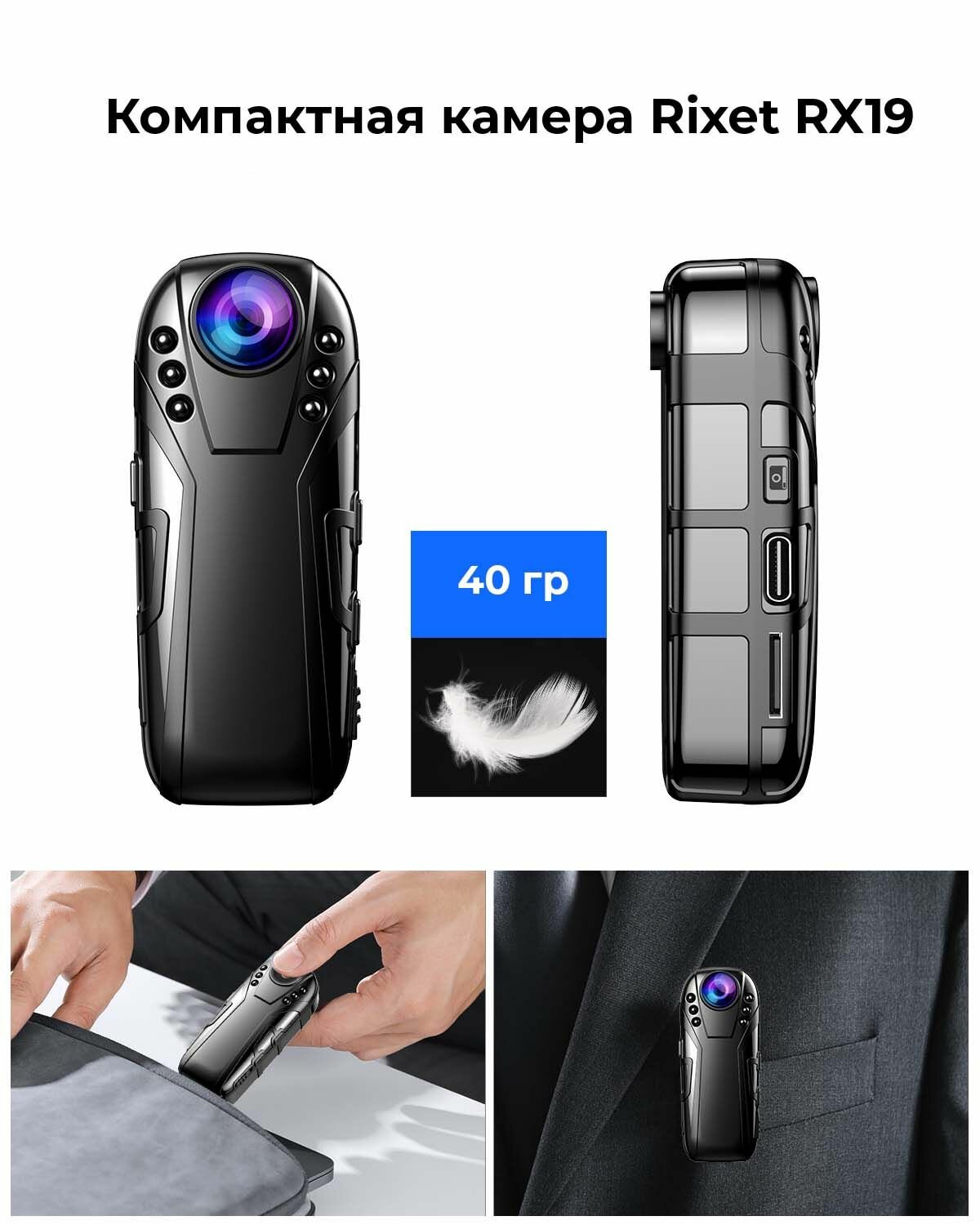 Нагрудный видеорегистратор RIXET RX19 32 Гб с разрешением Full HD и с ночным видением, персональный носимый регистратор на одежду с обзором 125, нательная цифровая камера: сравнение цен, характеристики, фото, актуальное наличие и цены.