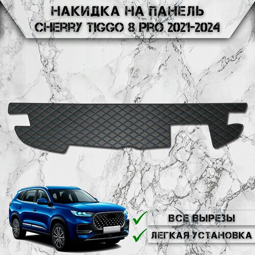 Купить Накидка на панель приборов для Чери Тигго 8 про / Chery Tiggo 8 pro 2021-2024 Г. В. из Экокожи Чёрная с синей строчкой с доставкой по всей России. Накидка на панель приборов для Чери Тигго 8 про / Chery Tiggo 8 pro 2021-2024 Г. В. из Экокожи Чёрная с синей строчкой: сравнение цен, характеристики, фото, актуальное наличие и цены.