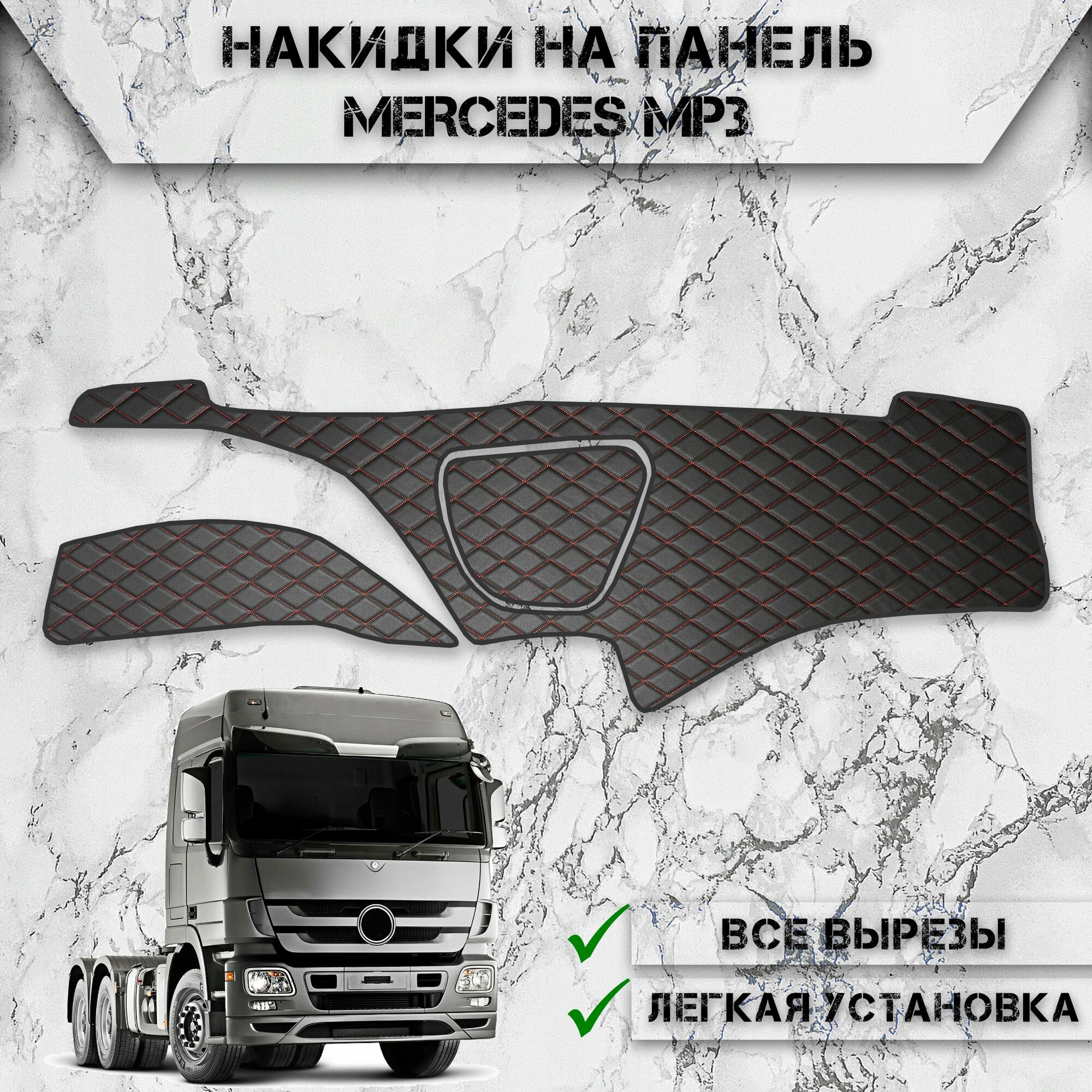 Купить Накидка на панель приборов для Мерседес Бенз / Mercedes-Benz MP3 из Экокожи Чёрная с красной строчкой с доставкой по всей России.