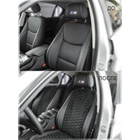 Универсальные авточехлы из экокожи с боковыми поддержками / автомобильные чехлы из экокожи черно-серые