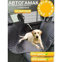 Автогамак - это прочная накидка или чехол для перевозки собак кошек на заднем сиденье автомобиля. Он предназначен для защиты салона или багажника от грязи, влаги и повреждений, которые могут возникнуть при транспортировке животных или др багажа. Автогамак можно использовать как покрывало для пикника. Автогамак очень компактный удобный и простой в использовании. В комплекте есть сумочка для его хранения. Накидка легко и быстро устанавливается на все заднее сидение. Наш гамак имеет лицевую сторону из прочной водоотталкивающей ткани Оксфорд, которая легко моется и устойчива к стиранию, изнанку (подкладка) - полиэстер с пропиткой. Изнанка помечена биркой. Этот автомобильный аксессуар защищает заднее сиденье от царапин, слюны и волос животного. Кроме того, он обеспечивает безопасность водителя и пассажиров, предотвращая отвлечение внимания и уменьшая риск возникновения аварийных ситуаций. Одним из главных преимуществ автогамака является его грязеотталкивающая поверхность. Автогамак имеет прочную конструкцию и выдерживает даже самых активных животных. Если вы ищете подарок для своего друга-автовладельца или просто хотите обеспечить своего питомца комфортной поездкой на заднем сиденье автомобиля, то автогамак - это идеальный выбор для вас. Места креплений и длина резинок позволяют устанавливать его практически на всех марках автомобиля. Стирать гамак можно в ручную при температуре не более 30 С, он не требует глажки. Автогамак оборудован специальными креплениями, которые обеспечивают надежную фиксацию накидки на заднем сиденье автомобиля. Для крепления использована ткацкая плотная и жесткая резинка, которая пришита к изделию двойной закрепочной строчкой. Гамак очень легко устанавливается с помощью 4 резинок-держателей.