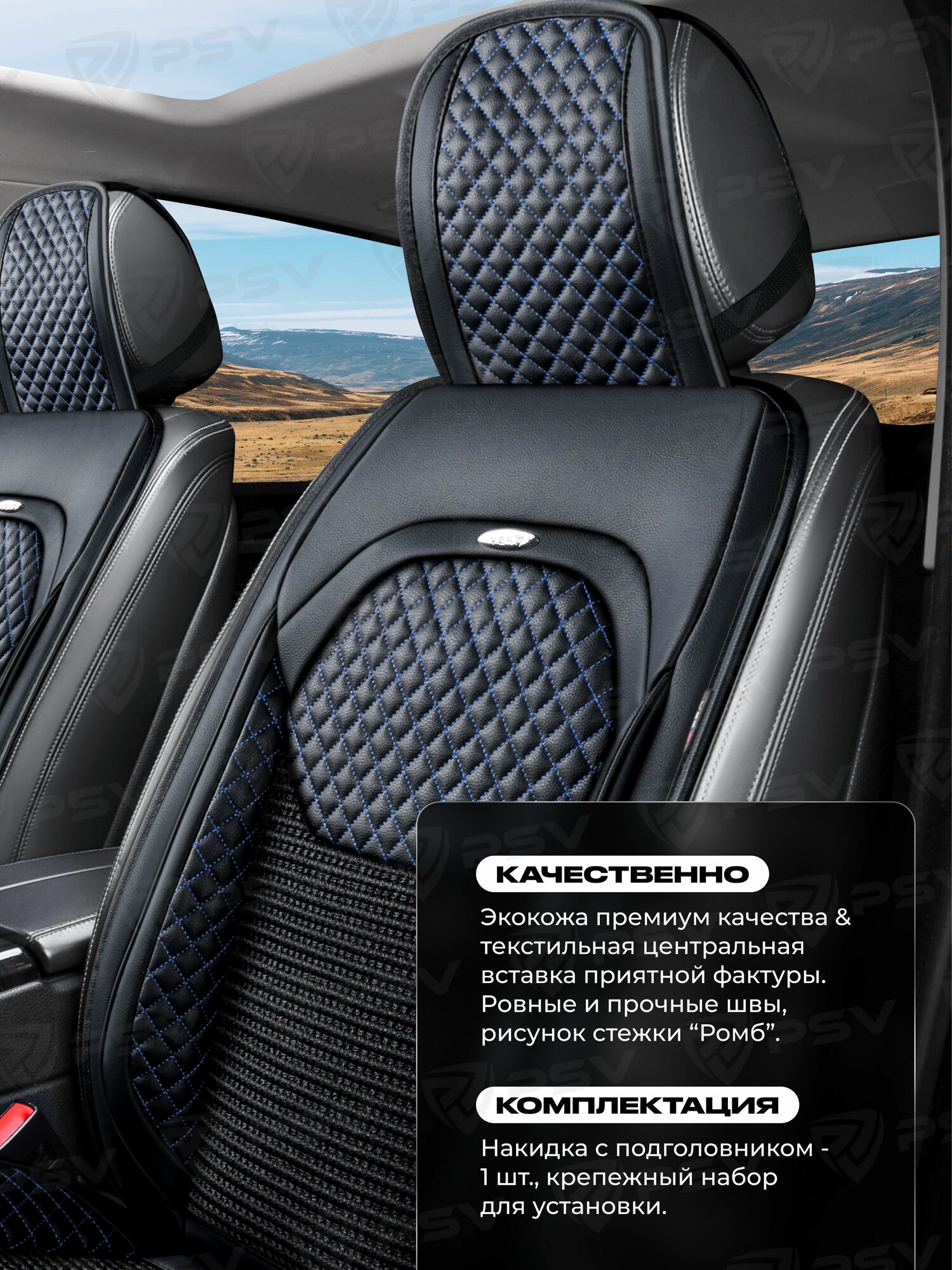 Накидка чехол на сиденья в машину автомобильная универсальная PSV Vostok FRONT (Черный/Отстрочка синяя), на переднее сиденье, 1 штука: сравнение цен, характеристики, фото, актуальное наличие и цены.