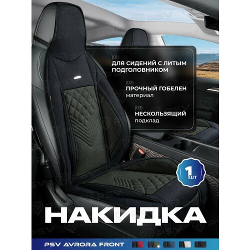 Универсальная накидка c карманом на автомобильное переднее сиденье PSV AVRORA FRONT выполнена из гобеленовой ткани - долговечным и износостойким материалом, стойким к образованию складок.