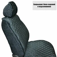Купить Накидки-чехлы для Ниссан Патрол (1997 — 2004) внедорожник 3 двери / Nissan Patrol на передние сиденья Luxe VB, Велюр, Черный с бежевой строчкой. с доставкой по всей России.