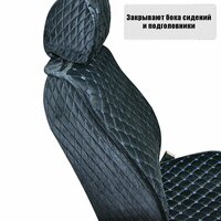Купить Накидки-чехлы для Ниссан Патрол (1997 — 2004) внедорожник 3 двери / Nissan Patrol на передние сиденья Luxe VB, Велюр, Черный с синей строчкой. с доставкой по всей России.