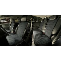 Купить Накидки для Мазда 323 (1998 — 2001) хэтчбек 5 дверей / Mazda 323 на весь салон RS, Алькантара, Черный с синей строчкой с доставкой по всей России.