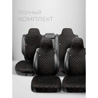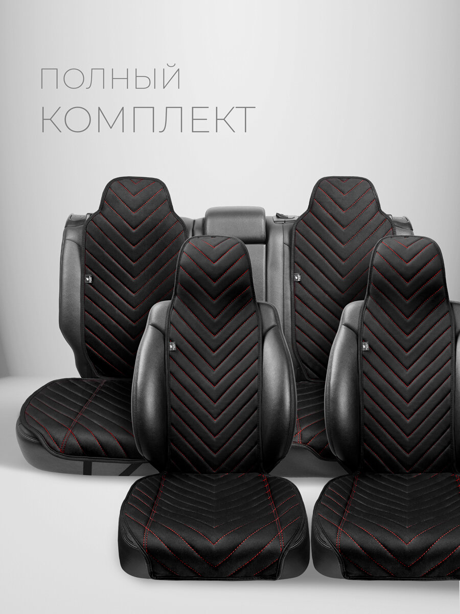 Купить Накидки на передние и задние сиденья автомобиля SV M Sport из алькантары от Barashkov. Чёрный/красная строчка с доставкой по всей России.
