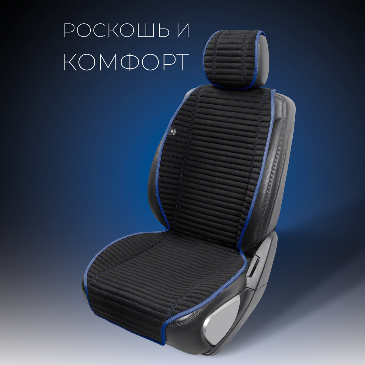Накидки на передние и задние сиденья из алькантары . Модель L POLOSA PK.Черный/синий кант: сравнение цен, характеристики, фото, актуальное наличие и цены.