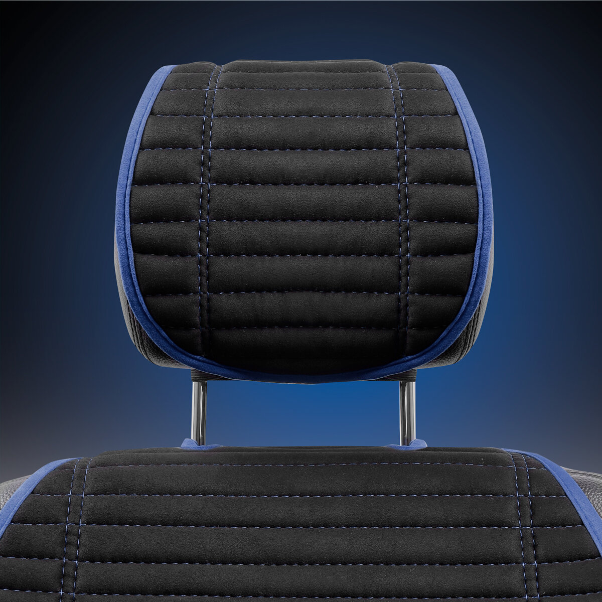 Купить Накидки на передние и задние сиденья из алькантары . Модель L POLOSA PK.Черный/синий кант с доставкой по всей России.
