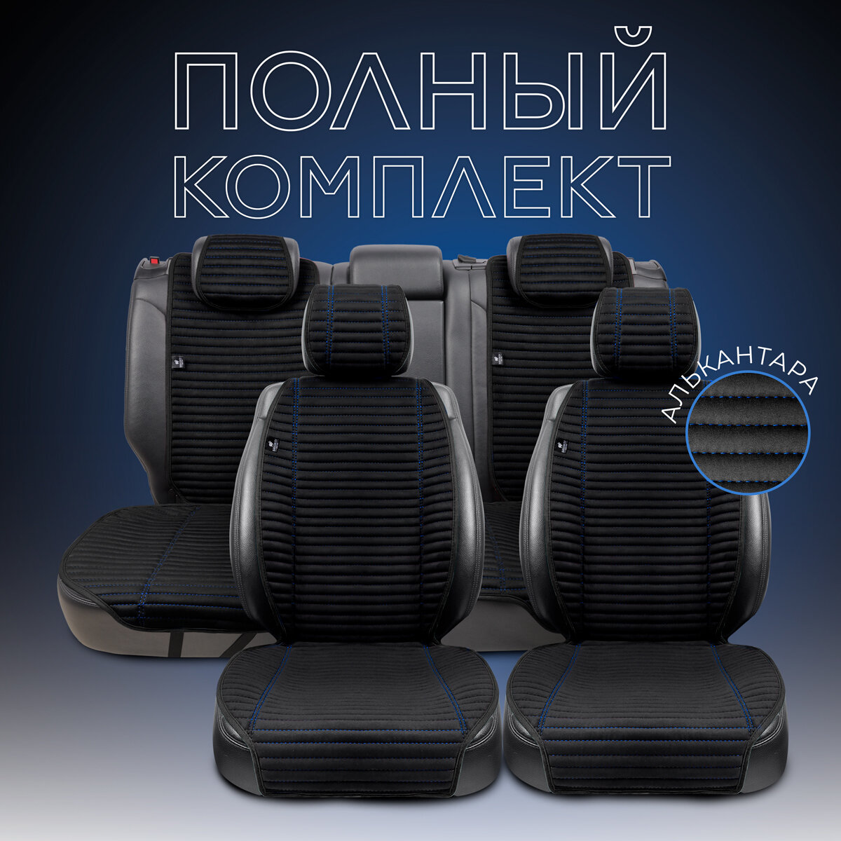 Чехлы в машину на сиденья универсальные в полный салон . Модель L POLOSA PK. Черный/синяя строчка: сравнение цен, характеристики, фото, актуальное наличие и цены.