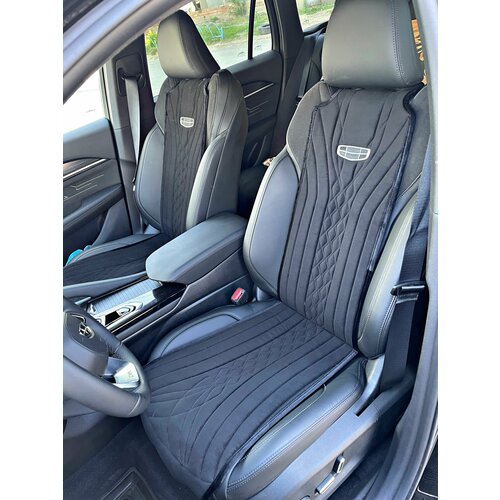 Купить Накидки на сиденья автомобиля Geely Monjaro, Atlas Pro, Atlas II, Cityray, Tugella / черные с логотипом / чехлы на сидения Джили Монджаро / автомобильные чехлы из алькантары с доставкой по всей России.