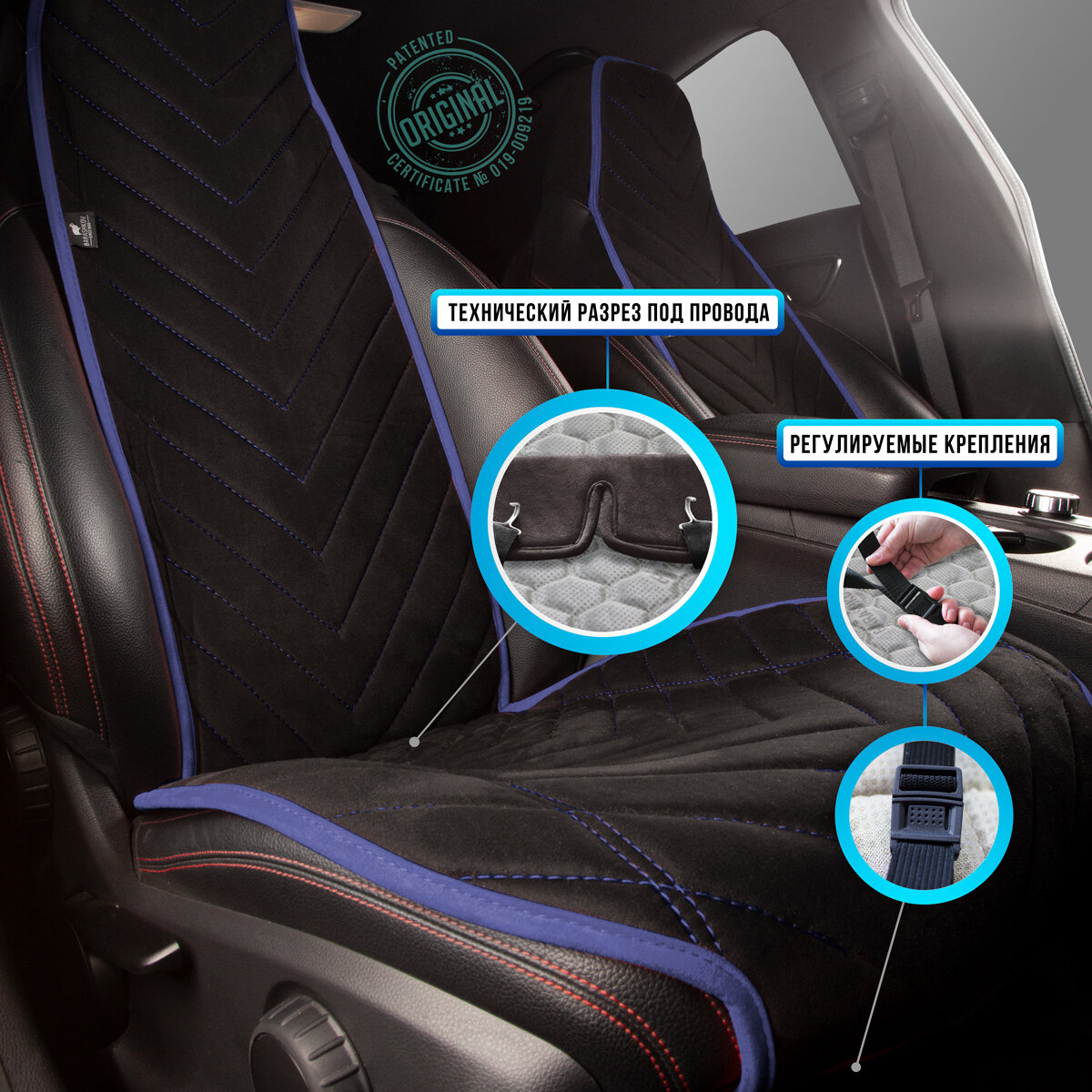 Накидки на передние сиденья автомобиля SV M Sport из алькантары от Barashkov. Черный/синий кант: сравнение цен, характеристики, фото, актуальное наличие и цены.