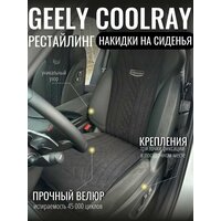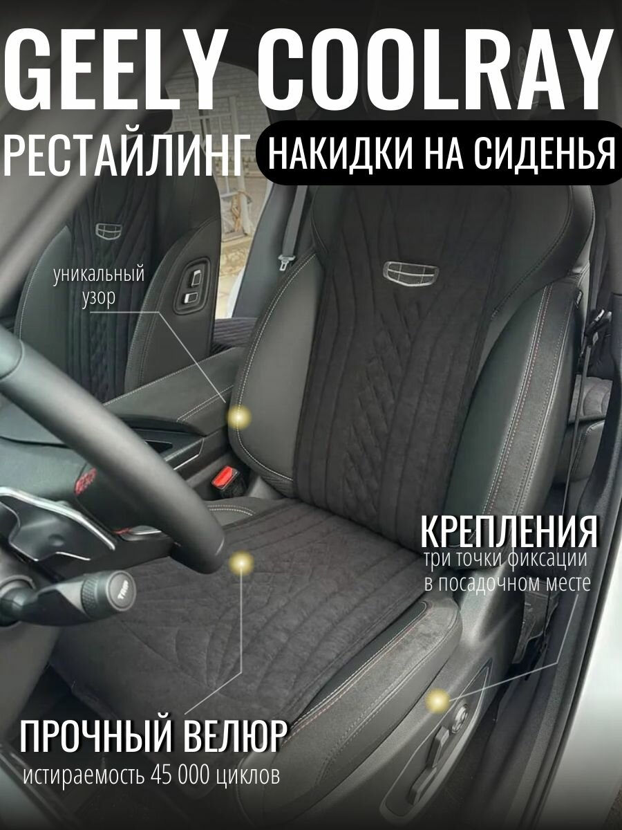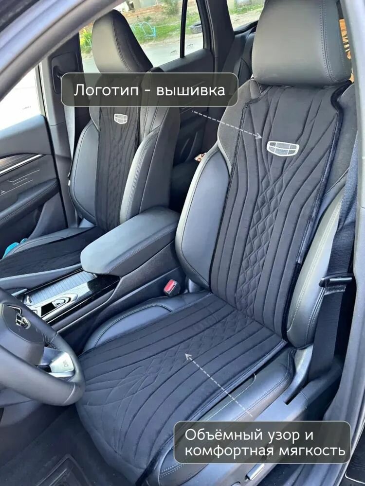 Купить Накидки на сидения автомобиля Geely Coolray с логотипом /рестайлинг/ чехлы на сидения Джили Кулрей / автомобильные чехлы из алькантары с доставкой по всей России.