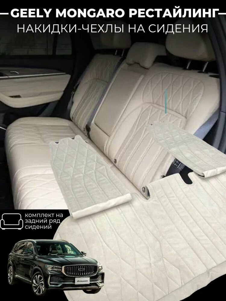 Купить Накидки на сиденья автомобиля Geely Monjaro рестайлинг белые/ чехлы на задние сидения Джили Монджаро / автомобильные чехлы из алькантары с доставкой по всей России.