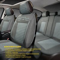 Комплектация: • 2 передних чехла-накидки • 2 передних подголовника • 2 задние спинки с литыми подголовниками • 1 центральный Г-образный подголовник • 1 заднее сиденье • 1 вставка для заднего ряда