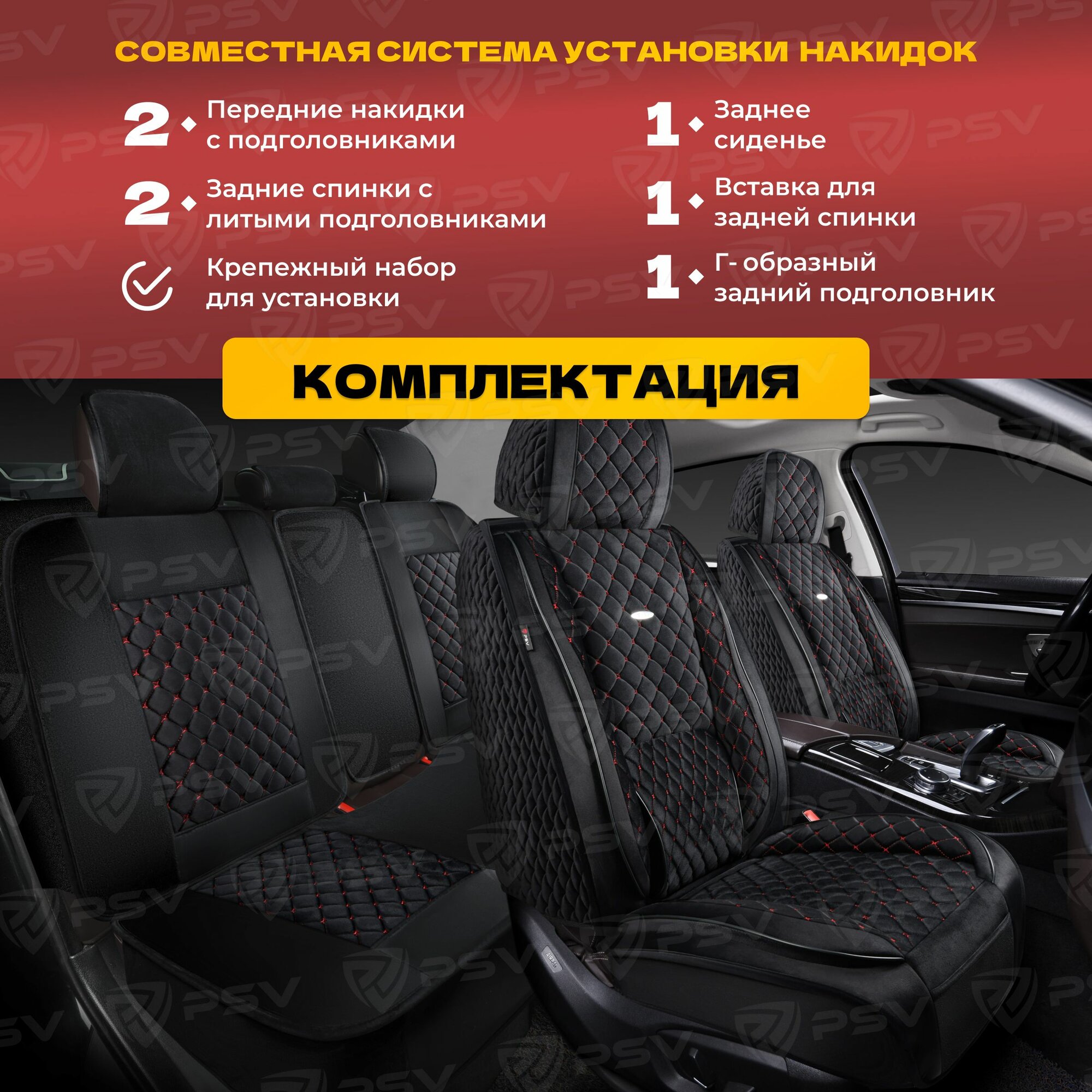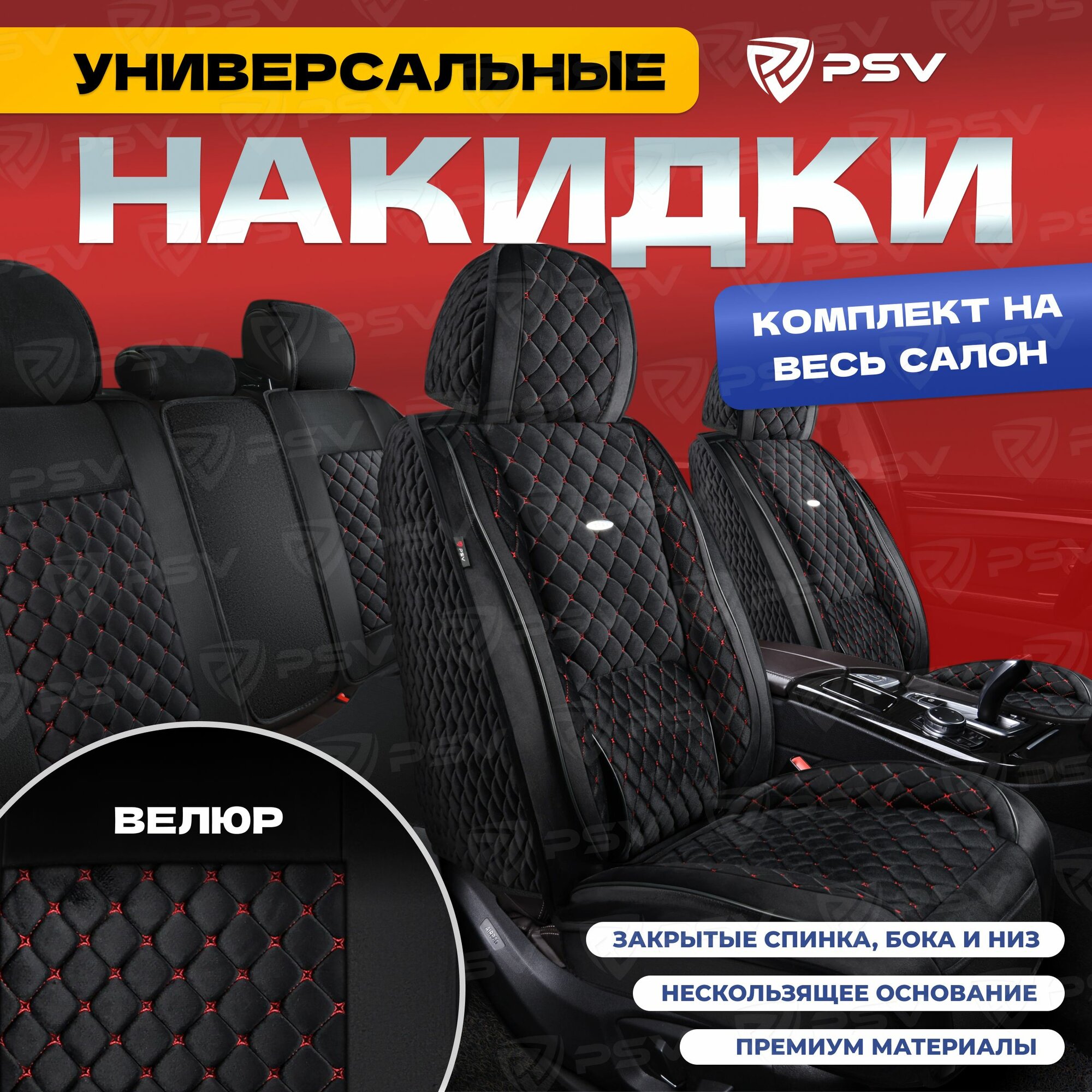 Накидки в машину универсальные 5D PSV Favorit Velur (Черный/Отстрочка Красная), комплект на весь салон, велюр: сравнение цен, характеристики, фото, актуальное наличие и цены.