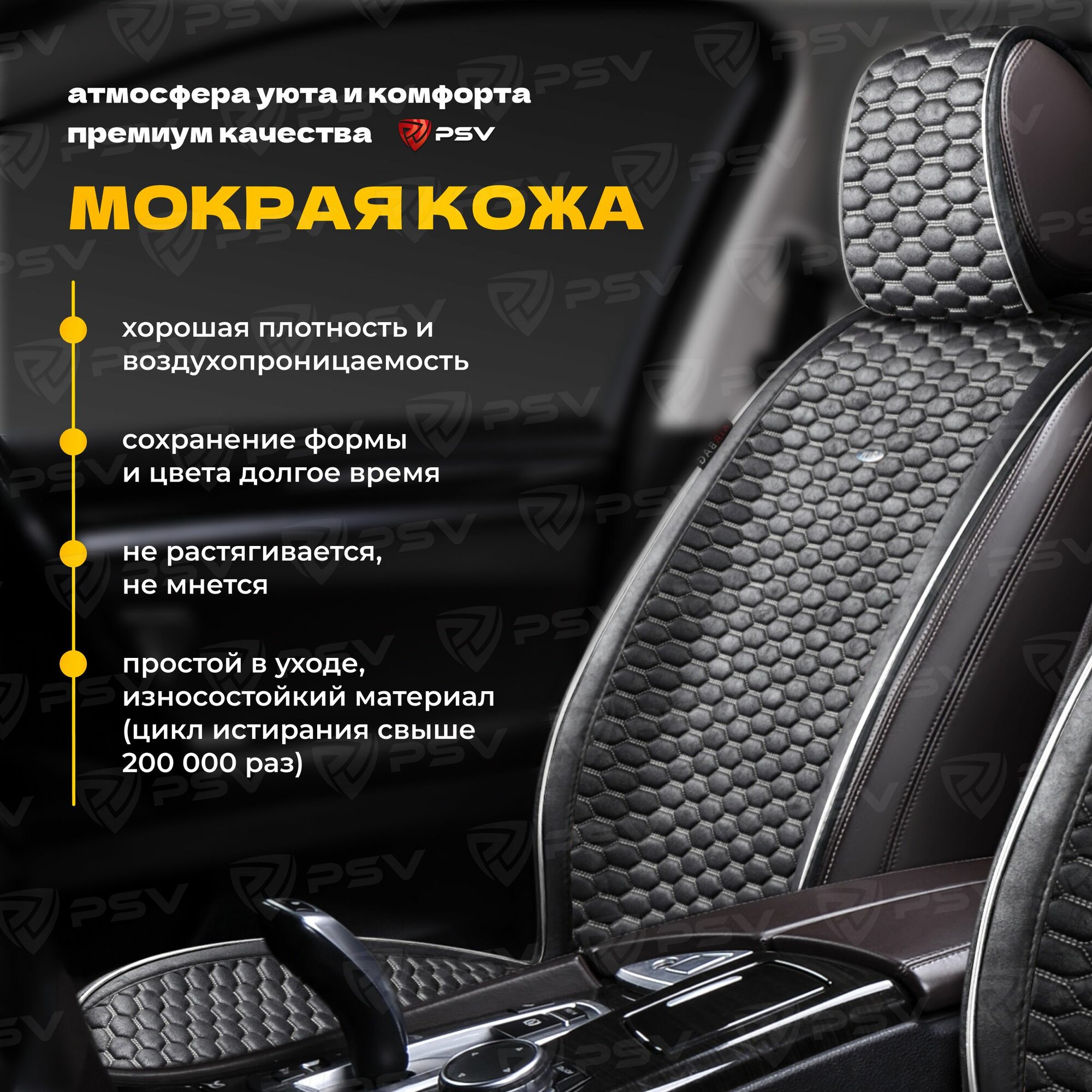 Универсальные накидки на весь салон автомобиля PSV Hornet Pro Skin с эффектом мокрой кожи изготовлены из полиэстера - износоустойчивого, прочного и дышащего материала. Декоративная отстрочка в дизайне "Соты".