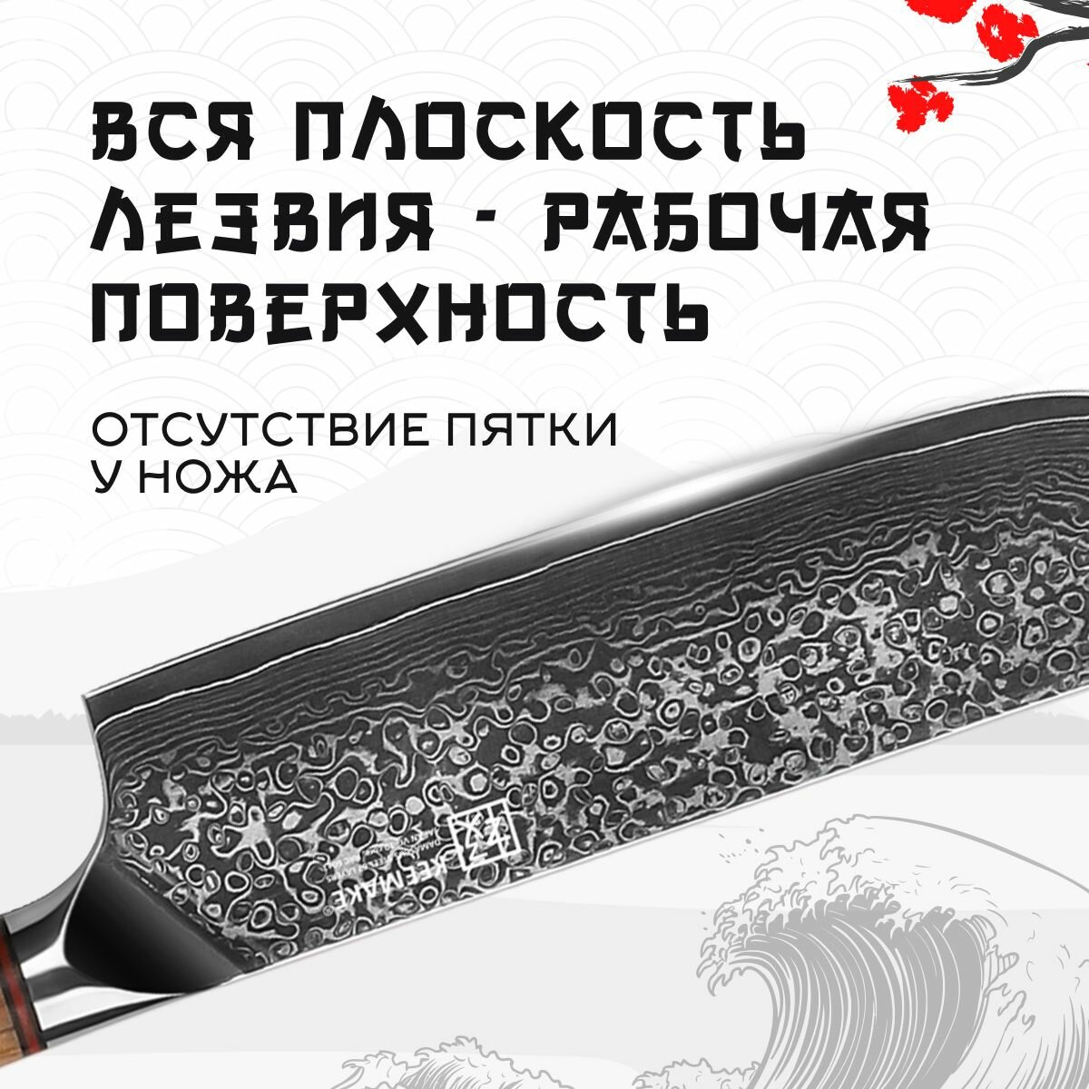 Профессиональные ножи кухонные Накири P-3 от компании Keemake представляют собой настоящее произведение искусства среди ножей премиум-сегмента. Этот шинковка для овощей из серии Phoenix воплощает лучшие традиции старинной дамасской ковки и поражает высоким качеством изготовления. Его сердце из высокоуглеродистой стали V Gold-10 с твердостью по Роквеллу равной 60 HRC позволяет использовать кухонные ножи, чтобы легко справляться с любыми задачами на кухне, будь то нарезка фруктов, овощей, корнеплодов, мяса или зелени. Широкий клинок длиной 174 мм, который получили ножи кухонные P-3, предлагает массу полезных применений. Нож из дамасской стали не только без проблем справляется с луком и листьями салата, но и легко режет плотные продукты, такие как тыква, дайкон, мясо и рыба. Ширина клинка позволяет удобно использовать Нож Накири как лопатку, перенося нарезанные ингредиенты с разделочной доски прямо в посуду. Ножи кухонные профессиональные Накири от Keemake требует минимального свободного пространства для работы и прекрасно адаптируется к различным техникам нарезки. Возможно использование как классической вертикальной шинковки, так и шинковки с движениям в сторону рукояти или от неё, что особенно распространено среди японских поваров. Кухонные принадлежности серии Phoenix имеют основу лезвия из высокоуглеродистой стали VG-10, обложенной 67 слоями дамасской стали. В сплав добавляются кобальт, ванадий и другие элементы, что делает нож поварской профессиональный от Keemake обаладателем неповторимой многослойной структуры и уникального узора на клинке, который привлекает внимание своей эстетикой. Процесс изготовления клинка, который отличает ножи из дамасской стали Накири P-3, включает вакуумную термическую обработку с последующим отпуском после закалки. Это значительно улучшает механические свойства стали, такие как твёрдость и вязкость, что улучшает шинковочный нож для овощей в плане его рабочих характеристиках. Острый, как бритва, клинок симметрично заточен на водных камнях высокой степени зёрнистости под минимальным углом с обеих сторон, благодаря чему нож – шинковка для капусты Накири поддеживает остроту долгое время без необходимости частой заточки. Рукоять, которую имеют ножи для кухни серии Phoenix, заслуживает особого внимания благодаря своему эргономичному дизайну и превосходным материалам. Она выполнена из натурального средиземноморского оливкового дерева, которое обладает высокой прочностью, влагостойкостью и устойчивостью к механическим повреждениям. Природная текстура дерева с отчётливыми линиями делает Накири нож для шинковки капусты уникальным и эффектным на вид, а сам материал, благодаря своей маслянистой структуре, имеет естественную защиту от влаги и повреждений. Оливковое дерево обеспечивает нож для нарезки овощей P-3 гипоаллергенностью и долговечностью рукояти, которая легко чистится и сохраняет свою гладкую поверхность даже при интенсивном использовании. Мозаичный пин из чистой меди является не только украшением, но и делает товары для кухни особенными и изящными на вид, подчёркивая утончённость коллекции Phoenix. Цельный хвостовик (фултанг), который получили необычные ножи, обеспечивает идеальную развесовку и надёжность в эксплуатации. Стальной больстер, плавно переходящий в клинок, не только обеспечивает нож по