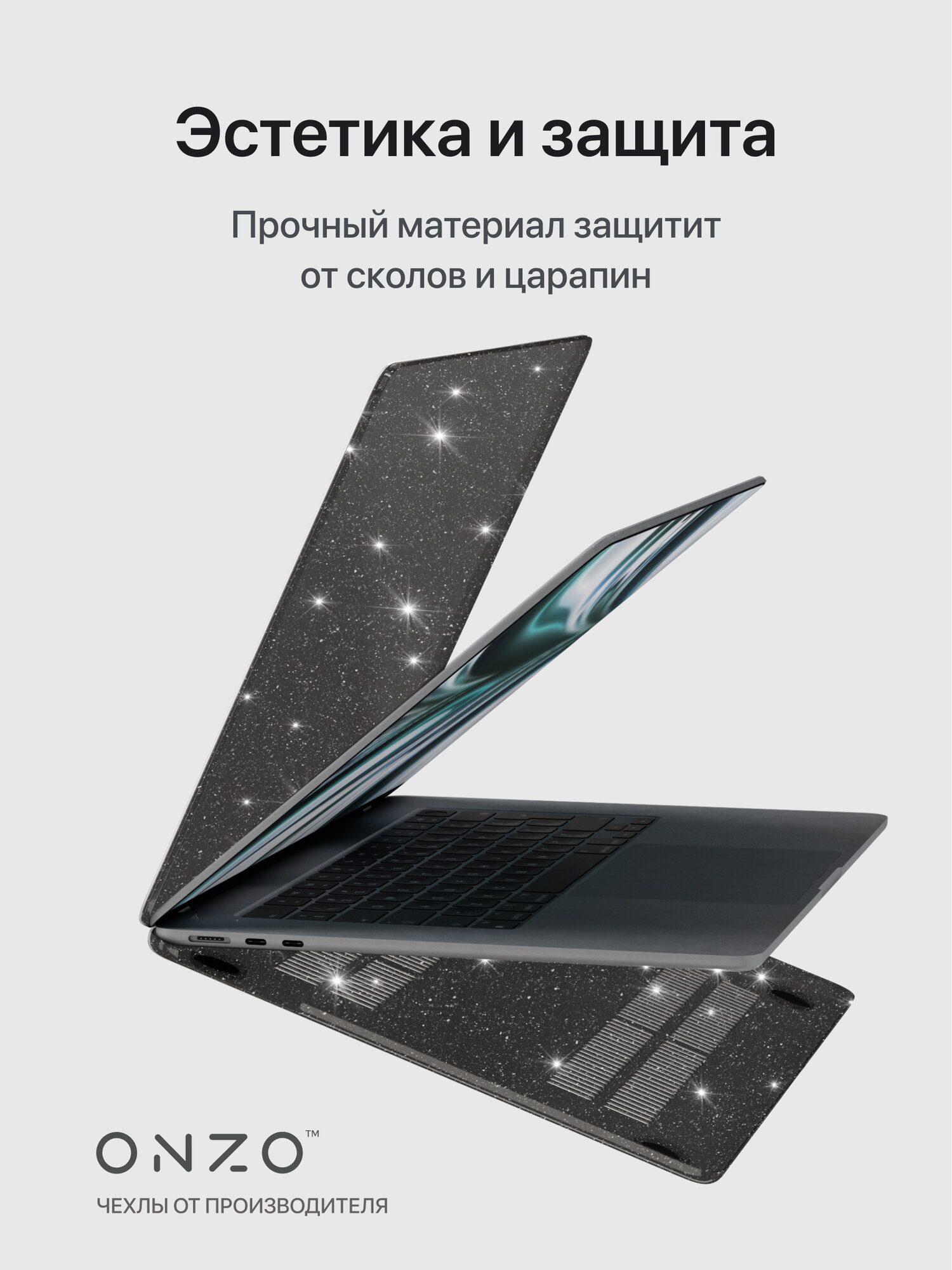 Накладка чехол ONZO «CHIC» для MacBook Air 2023air15 (A2941/A3114) / Мак бук эир темно-прозрачный с блестками: сравнение цен, характеристики, фото, актуальное наличие и цены.
