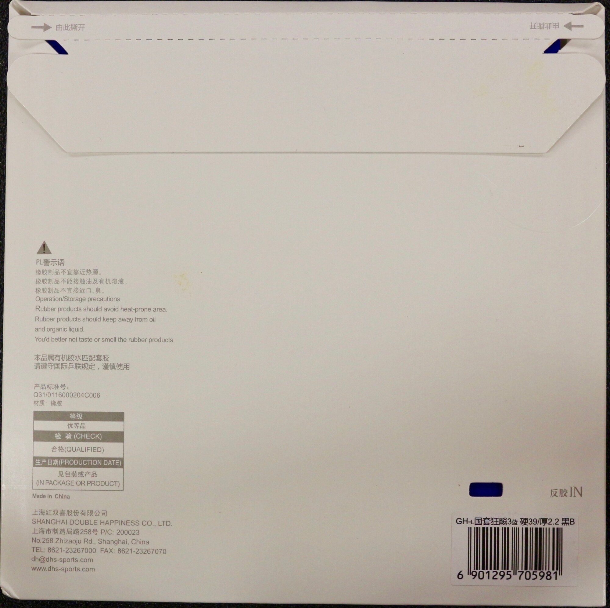 Купить Накладка для настольного тенниса DHS Hurricane 3 NATIONAL EDITION (BLUE SPONGE) (цвет: черный, 2.2мм, 39) с доставкой по всей России.