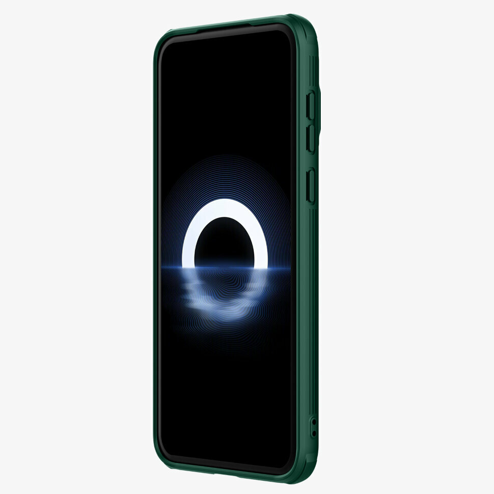 Накладка основательно крепится с задней стороны телефона и полностью повторяет форму аппарата. Материал для изготовления чехла серии PROP - это комбинированный высококачественный поликарбонат и силикон, также имеет матовый рельеф, благодаря чему уверенно не выскользнет из рук. Выгодное сочетание пластика и силикона обезопасит не только ваш смартфон, но и сам чехол, так как силиконовые борта не треснут при падении смартфона. Накладка Nillkin Cam Shield Prop Magnetic Case оснащена встроенным магнитным креплением MagSafe, что обеспечивает беспроводную зарядку вашего смартфона, а также крепление к различным магнитным держателям и прочим гаджетам, поддерживающим функцию MAgSafe.