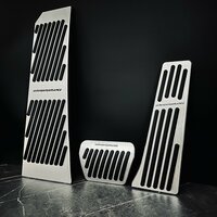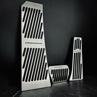 В комплекте 3 накладки: газ, тормоз и на площадку отдыха. Для установки необходимо снять штатную резиновую накладку с педали тормоза и установить вместо нее накладку из комплекта. Накладка на педаль газа надевается сверху вниз как чехол и тщательно фиксируется на педали за счет боковых выступов. Накладка на площадку отдыха фиксируется на качественный двухсторонний скотч.