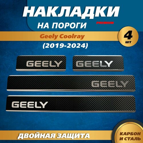 Накладки на пороги Джили Кулрей / Geely Coolray (2019-2024) с надписью Джили имеют полный комплект из 4 штук. Данная модель сочетает в себе обновленный внешний вид и относиться к премиальной коллекции. Накладки - это эффективный и стильный аксессуар для Вашего автомобиля. Они изготавливаются исключительно индивидуально и соответствуют всем особенностям конструкции корпуса автомобиля , а также идеально вписываются на поверхность подножки. Особенность данной модели накладок - это двойная защита от износа и коррозии. В основе лежит нержавеющая сталь AISI 430 с зеркальной поверхностью (благодаря своей отражающей поверхности надпись Geely будет переливаться на свету), сверху карбоновая пленка 3D FIVE5STAR – 160 микрон (она же пленка карбон авто) толщина – 0,6 мм, масса – 0,3 кг. Благодаря новому подходу в разработке накладок вы навсегда забудете о деформации лакокрасочного покрытия (ЛКП). Накладки на пороги для автомобиля – это не только защита вашей машины, но и стильный элемент авто тюнинга. Молдинги на авто устойчивы к УФ-лучам и погодным условиям, не выцветают и не разрушаются под воздействием солнца или влаги.