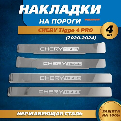 Хотите максимально защитить и обезопасить ваш автомобиль Чери Тигго 4 Про от сколов и царапин? Накладки на пороги из нержавеющей стали – идеальное решение! Высококачественная зеркальная сталь марки AISI 430 красиво рассеивает лучи и переливается на солнце. Металлические пороги на машину отличаются повышенной прочностью, устойчивостью к коррозии и долговечностью. Накладки с легкостью отталкивают воду и грязь, а также устойчивы к перепадам температуры. Нанесение надписи модели осуществляется с помощью лазерной гравировки. Выгравированные символы не стираются, что позволяет использовать изделия в агрессивной среде.