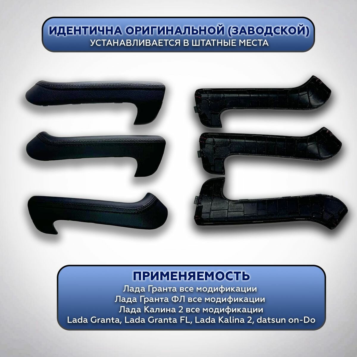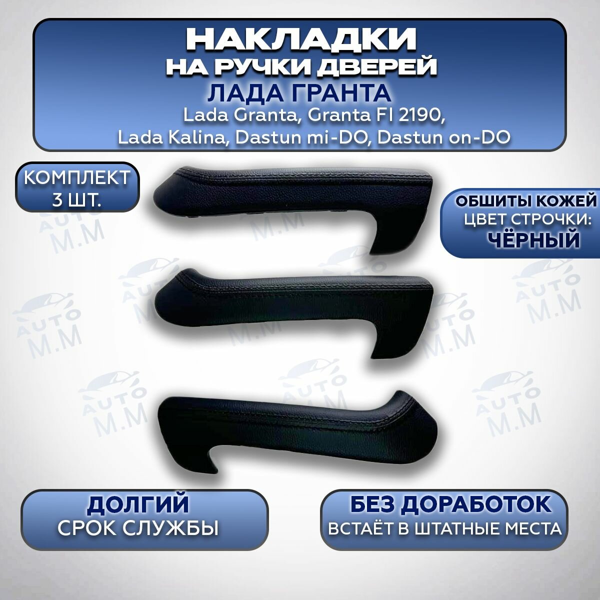 Накладки на внутренние ручки дверей в коже черная строчка, комплект 3 шт Лада Гранта, Гранта ФЛ, Калина 2, Датсун / ВАЗ 2190, 2191, 2192, 2194: сравнение цен, характеристики, фото, актуальное наличие и цены.