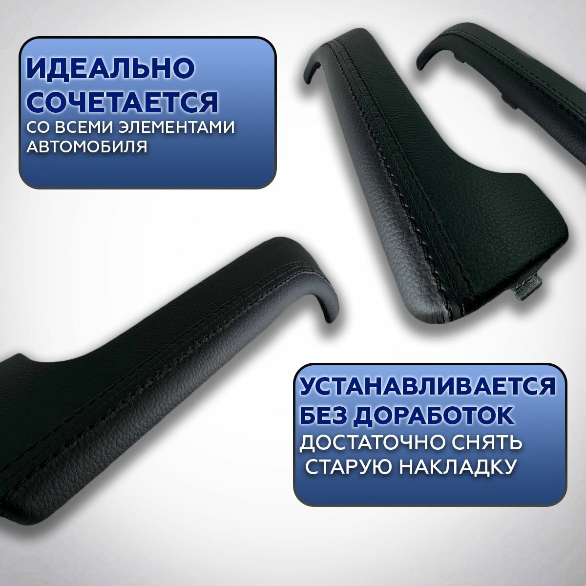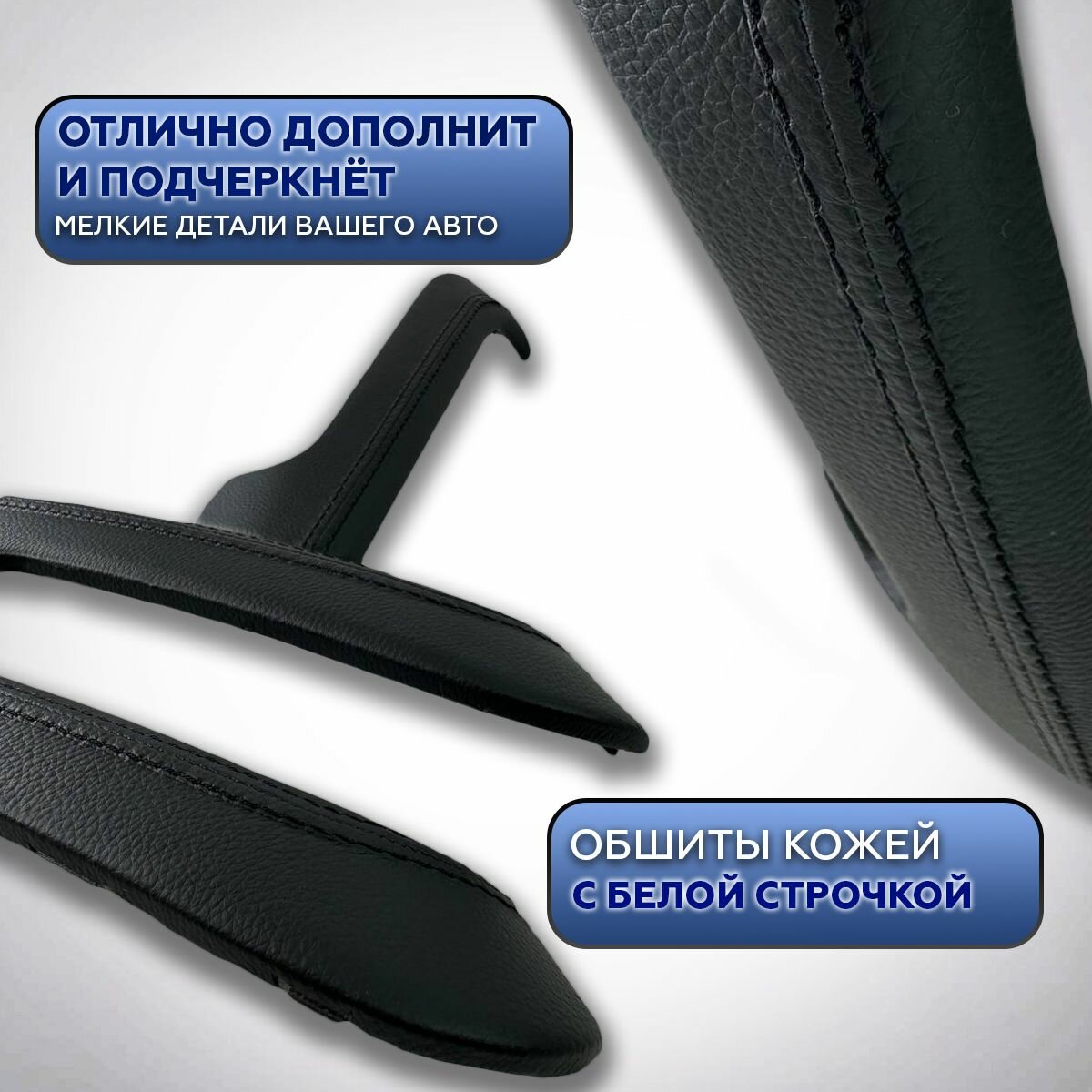 Накладки на внутренние ручки дверей в коже черная строчка, комплект 3 шт Лада Гранта, Гранта ФЛ, Калина 2, Датсун / ВАЗ 2190, 2191, 2192, 2194