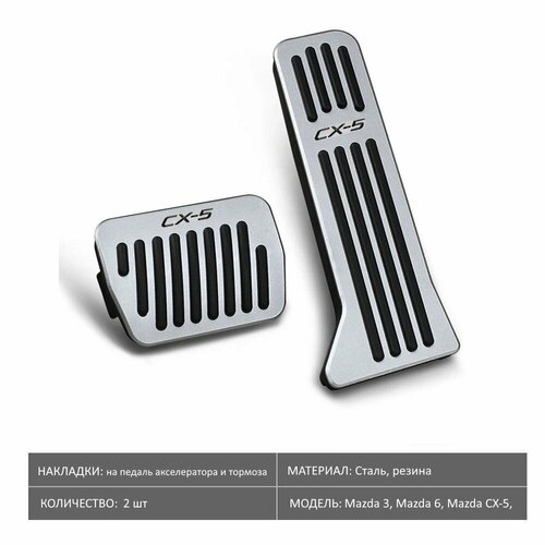 Накладки педалей для Mazda3 (2014+), Mazda6 (2014+), c логотипом CX-5: сравнение цен, характеристики, фото, актуальное наличие и цены.