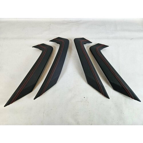 Накладки ручек салона на Лада Веста NG. В наборе четыре накладки обтянутые кожей. Идеально заменят вышедшие из строя штатные вставки в ручки, или при желании изменят интерьер автомобиля. Отлично впишутся и добавят изюминки в общий вид салона. Монтаж производится взамен штатных накладок внутренних ручек дверей.