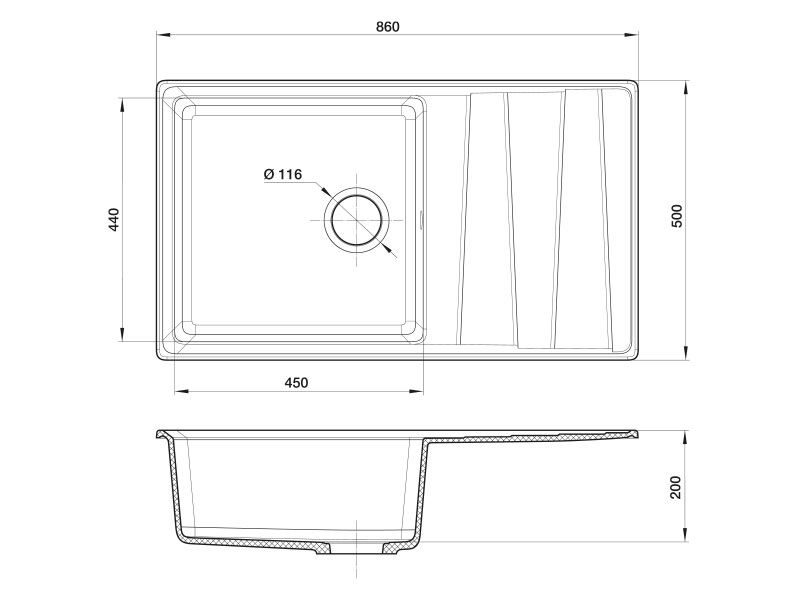 Кухонная мойка GranFest Level GF-LV-860L предназначена для установки в частных домах, квартирах, офисах, отелях, гостиницах и на различных предприятиях для мытья столовых принадлежностей, посуды, приборов, инвентаря и продуктов питания.