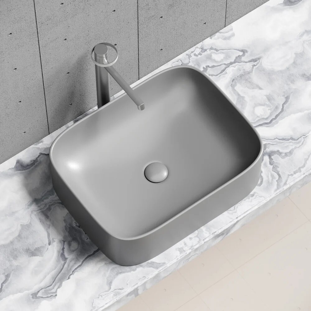 Купить Накладная раковина Ceramicanova Element CN6052MH 51 фарфоровая, без отверстия под смеситель, раковина для ванной, 50, 5 см, прямоугольная, серая с доставкой по всей России.