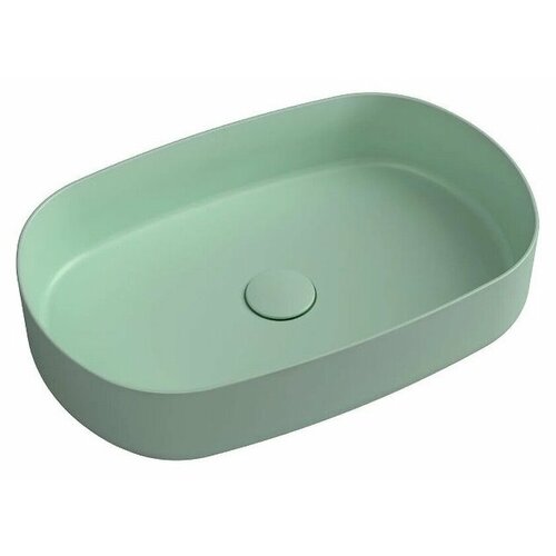 Форма: овальная, Ширина, см: 55, Глубина, см: 36, Высота, см: 12, Цвет: зеленый, Поверхность: матовая, Название цвета: мятно-зеленый, Отверстия под смеситель: без отверстий, Стилистика дизайна: современный стиль, Материал: фарфор, Перелив: нет, Крепление: к тумбе, к столешнице, Донный клапан: приобретается отдельно