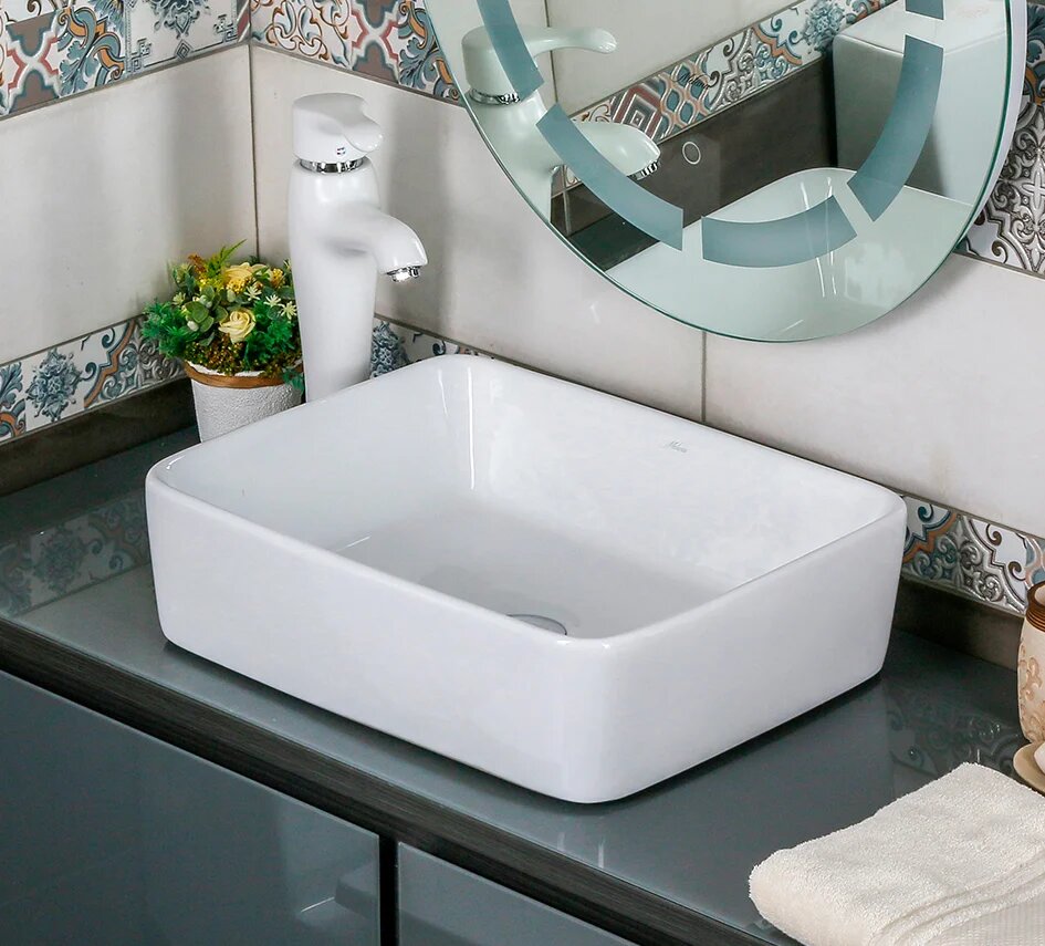 Накладная раковина Melana 7050H-805 49 фаянсовая, без отверстия под смеситель, раковина для ванной, 48, 5 см, прямоугольная, белая: сравнение цен, характеристики, фото, актуальное наличие и цены.